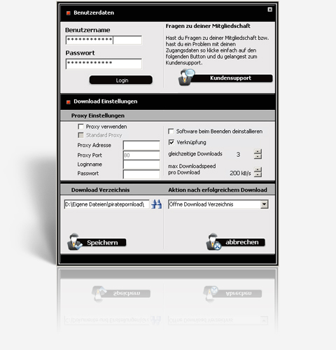 Tragen Sie bitte Ihren Benutzernamen und Ihr Passwort im Einstellungsfenster der Software ein: |